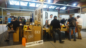 Smurfit Kappa représenté par son usine de Lorraine, concluait cette chaîne conditionnement avec une belle exposition de sa gamme d'emballages pour bouteilles de bière provenant de toutes ses usines de France. Ses dernières innovations étaient présentes, comme les collerettes 4 bouteilles, les coffrets spéciaux avec verres ou sa solution Prinkjet d'impressions petite série (SK Distribution).